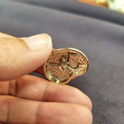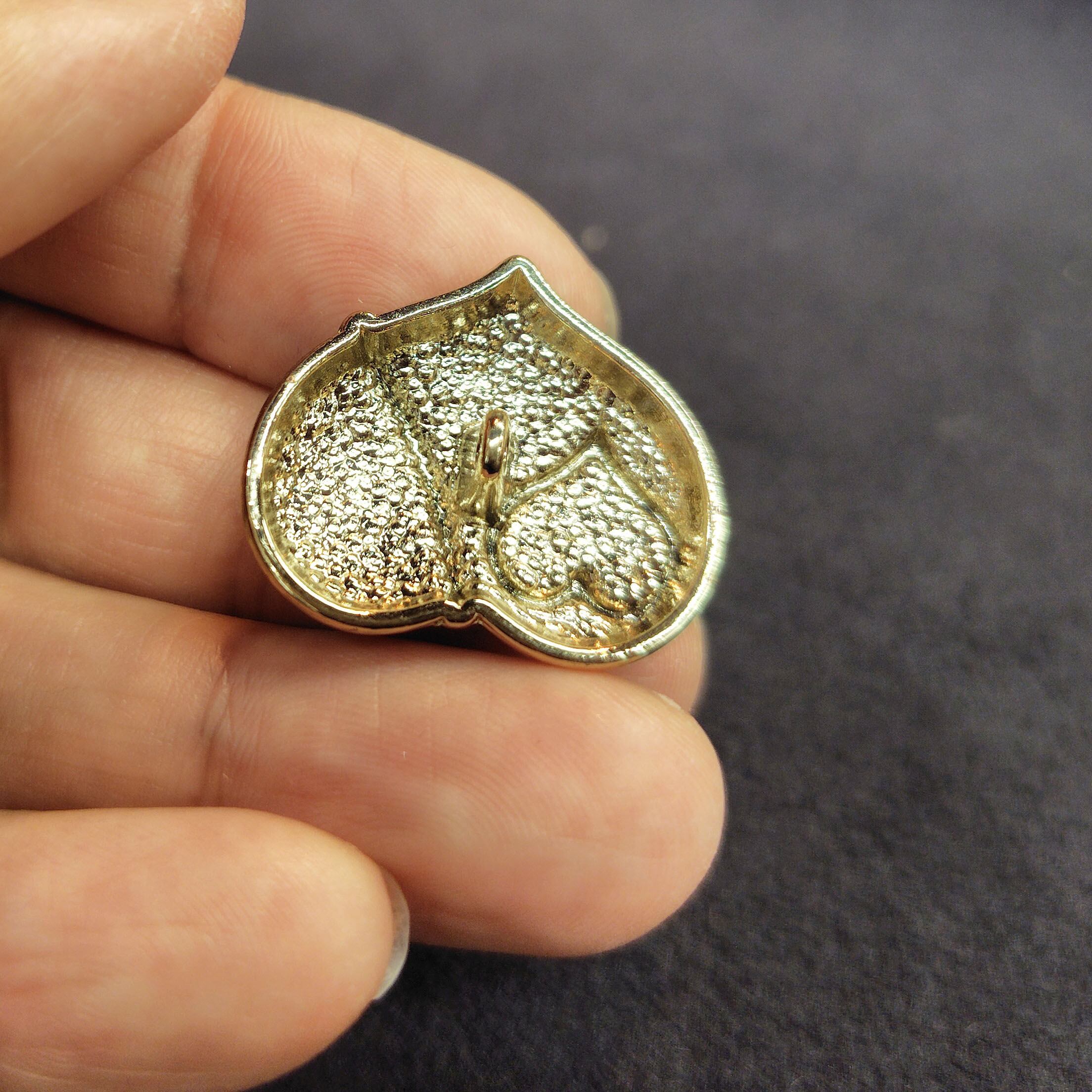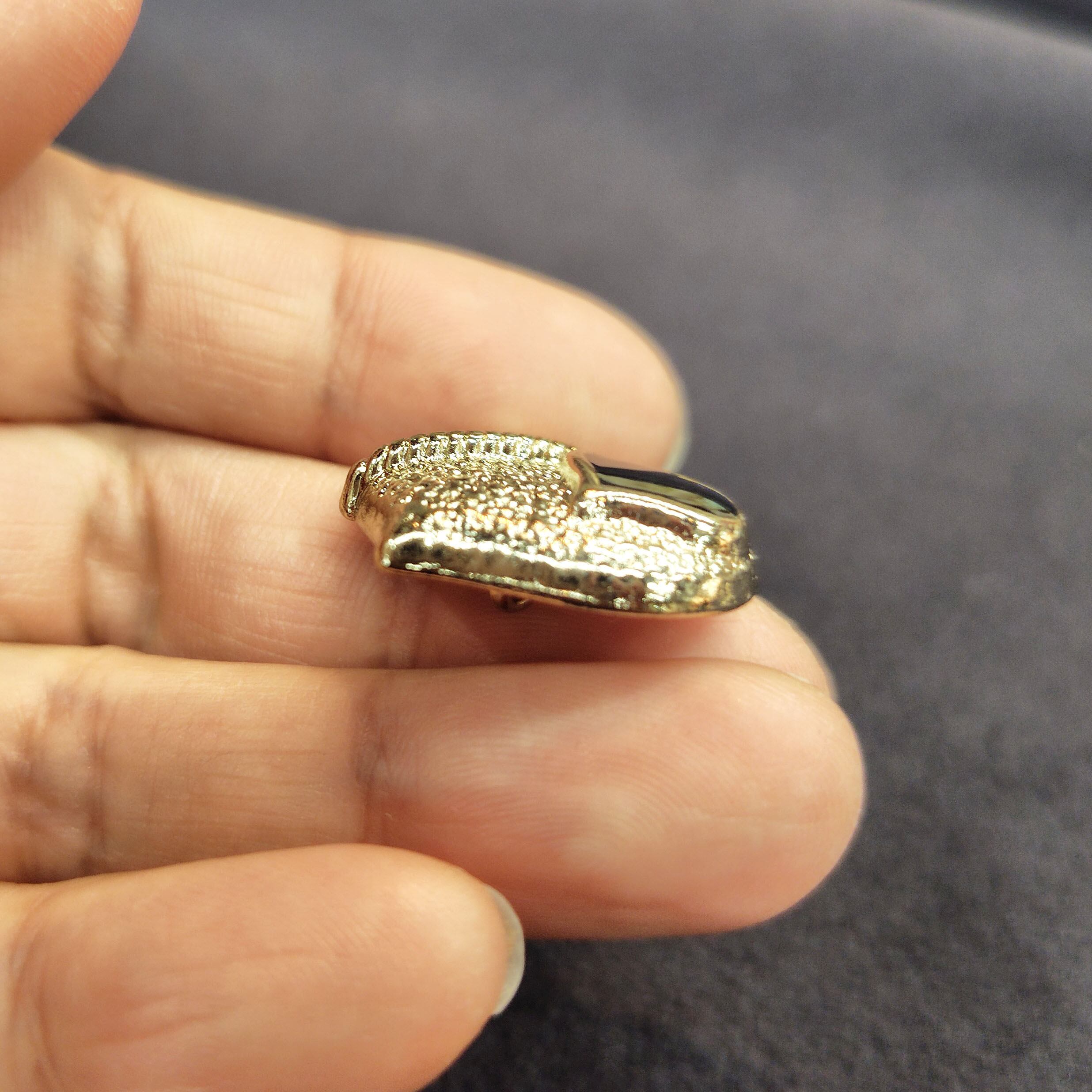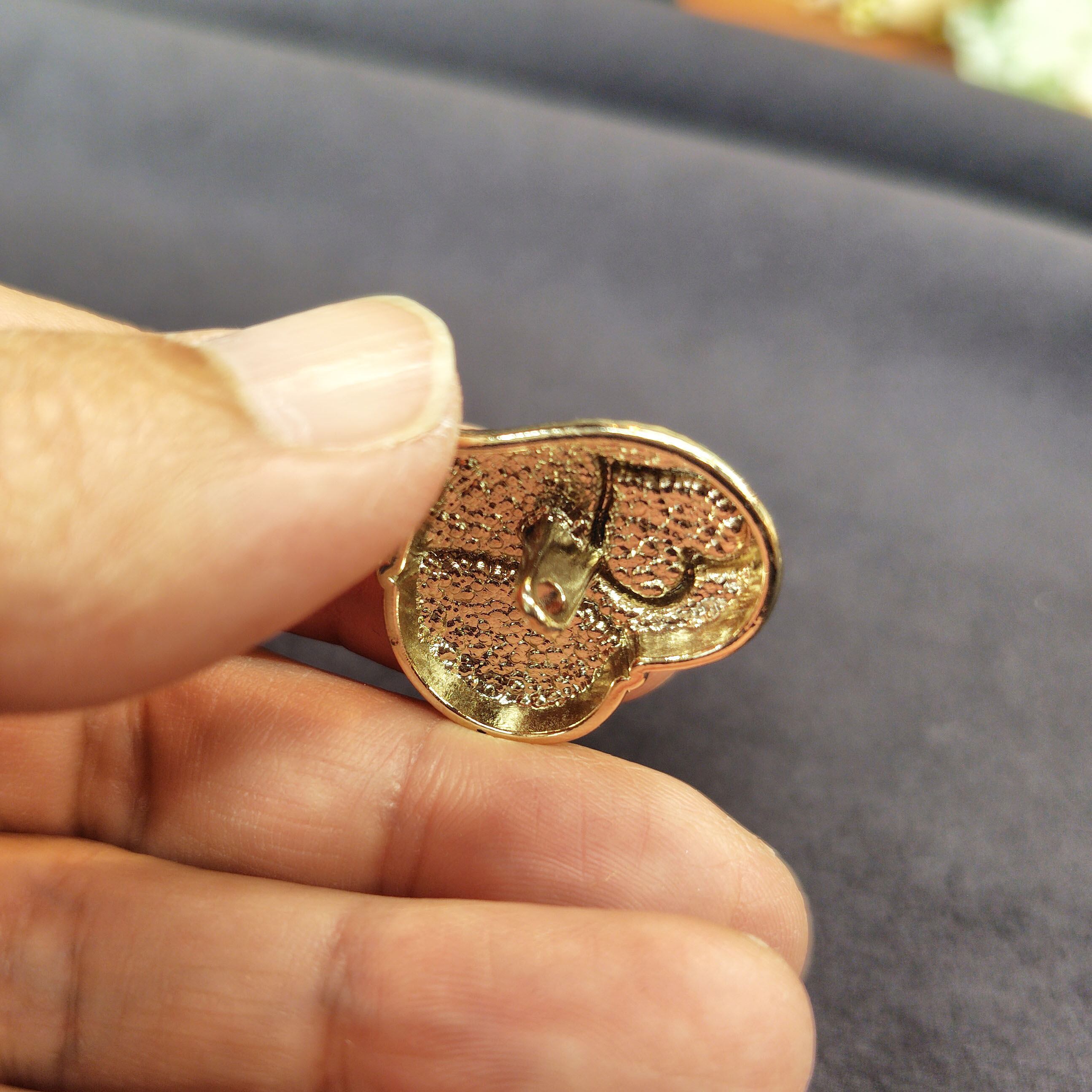 ハート形のゴールド部分に、黒のハートがポイントになったをした足つきボタンです。