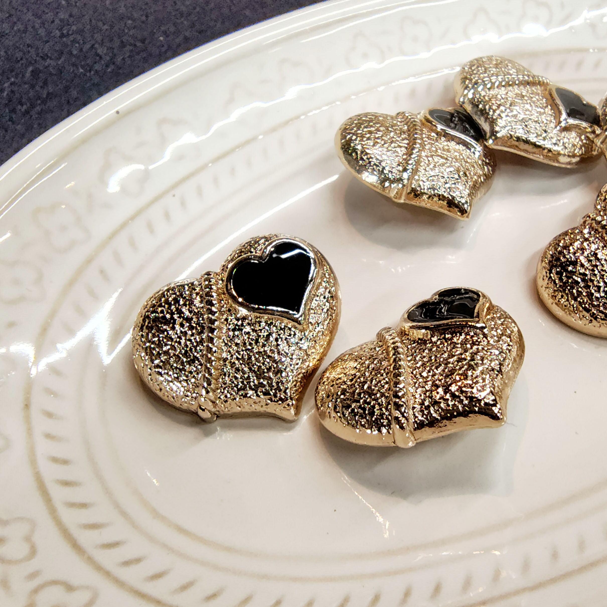 ハートは甘くて愛らしいモチーフですが、シャンパンゴールドのような落ち着いた色味と黒で華やかさをプラス。