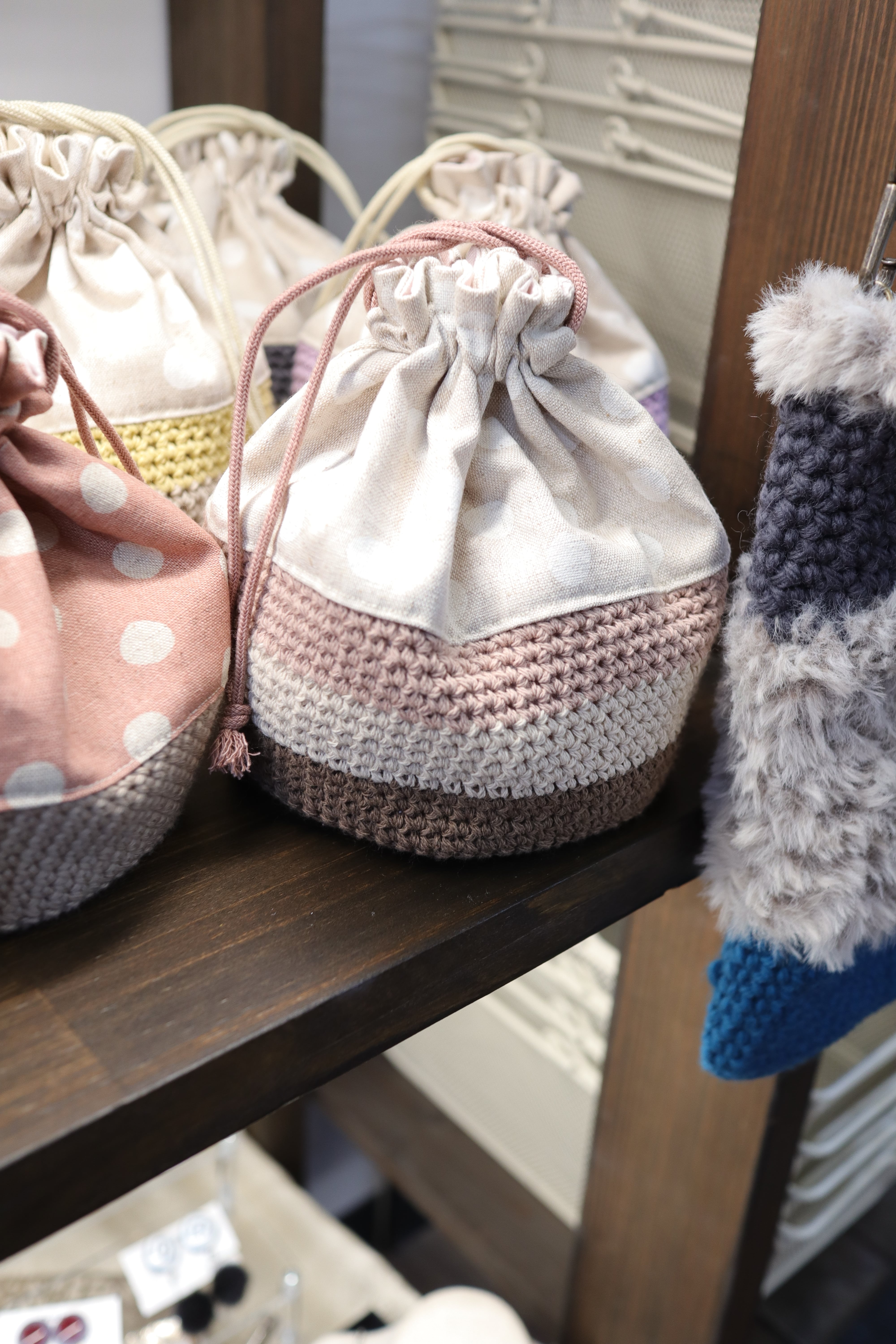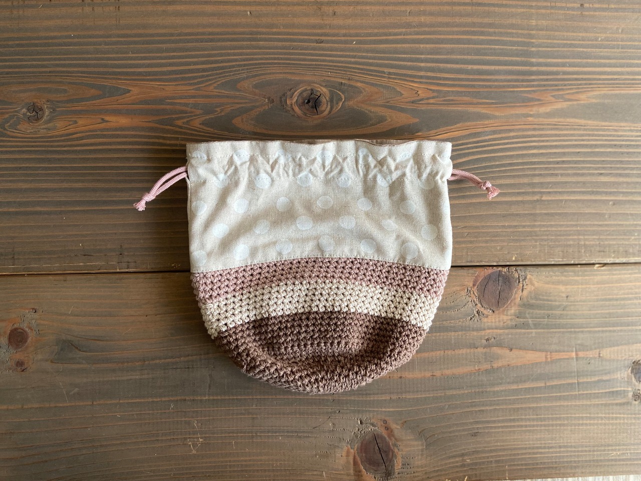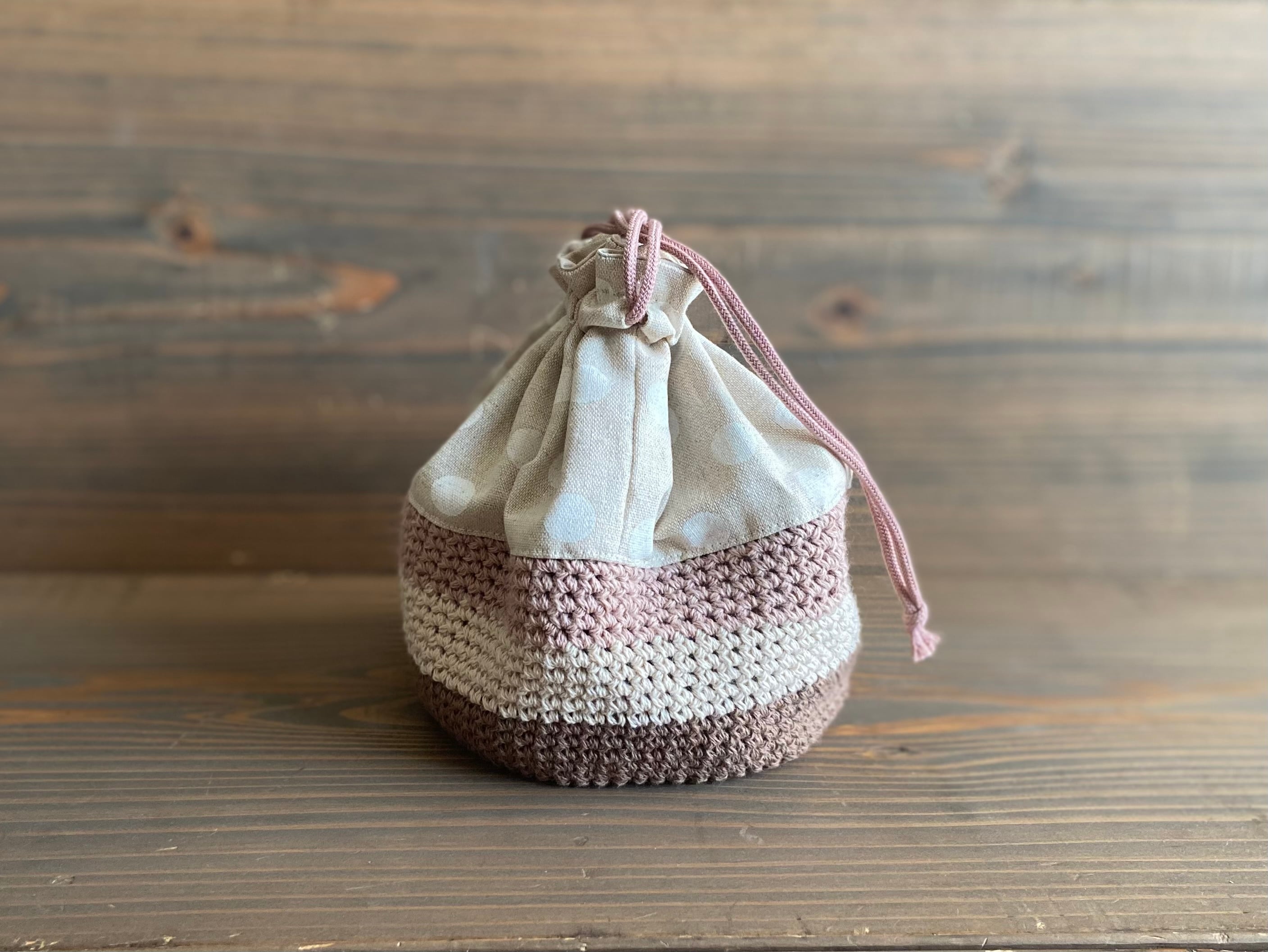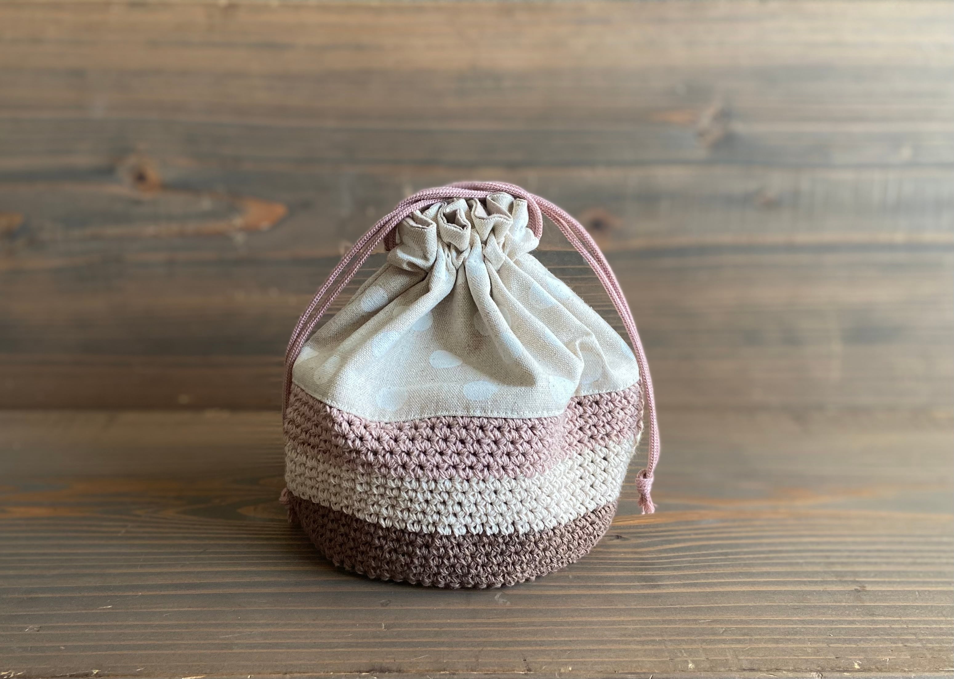布地を縫い合わせた巾着ポーチです。