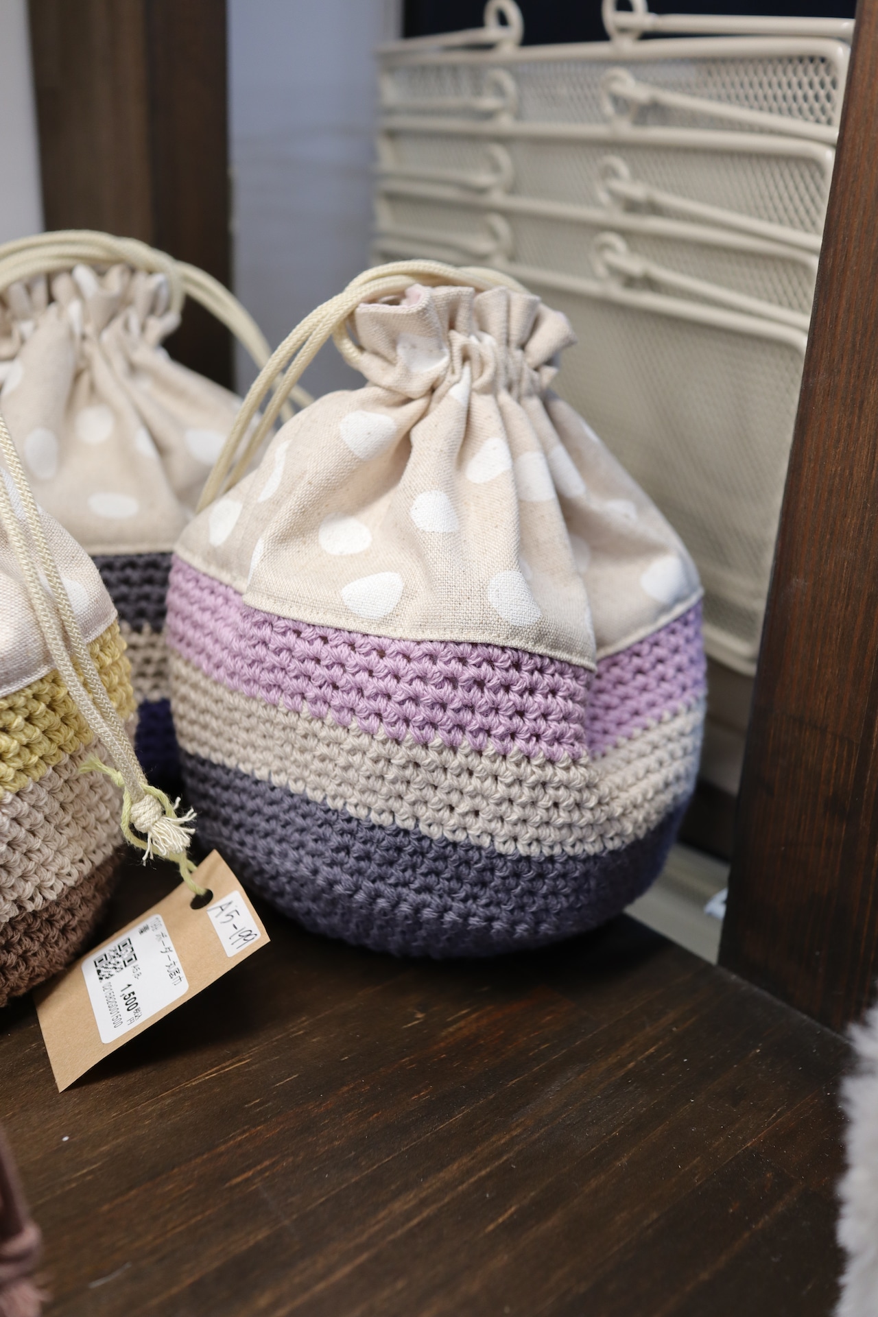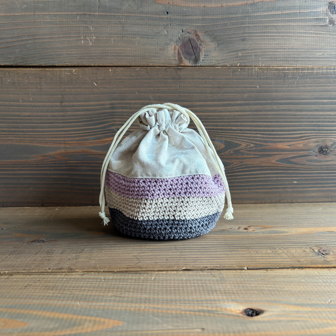 全体的にしっかりしていて自立する巾着です。