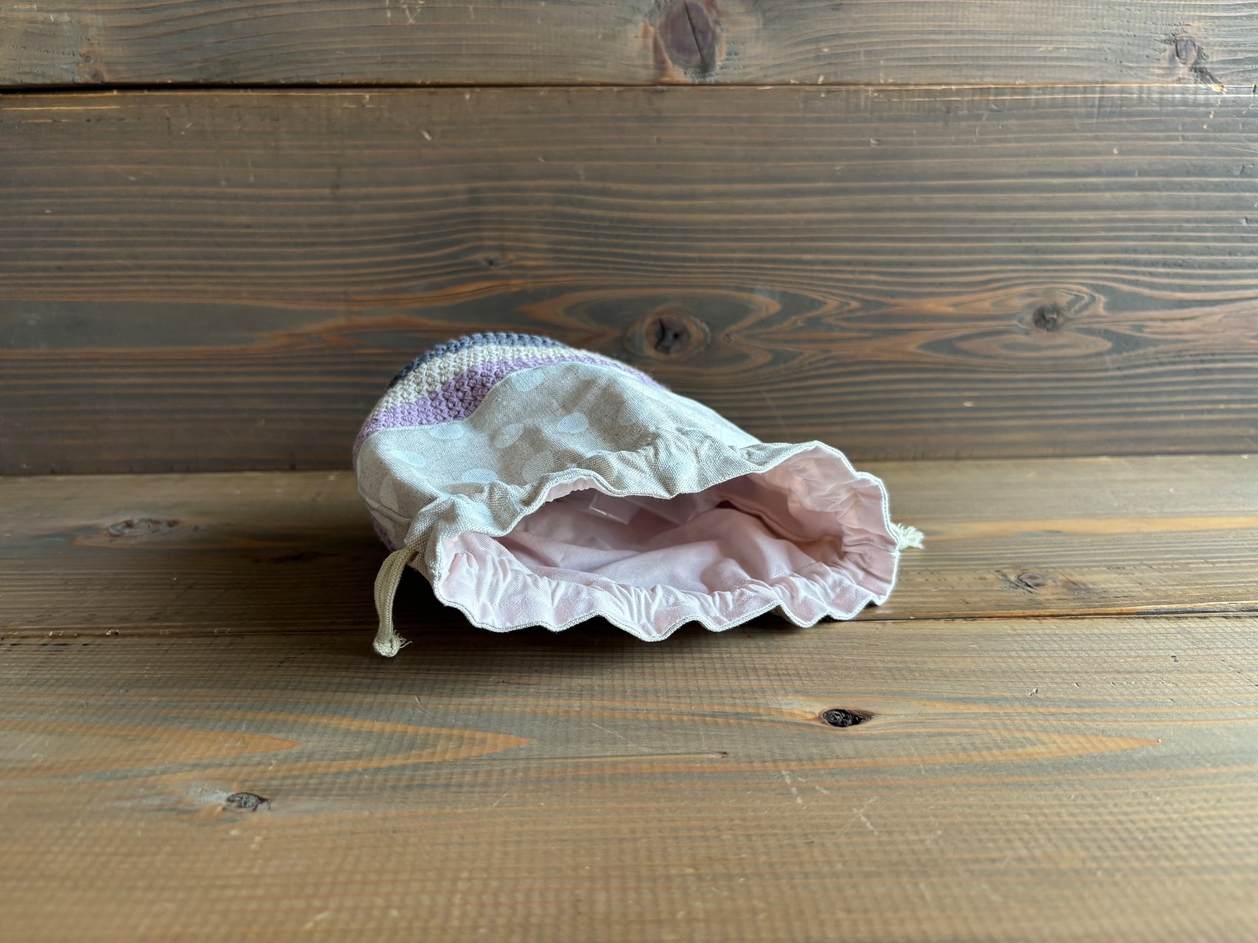 布地を縫い合わせた巾着ポーチです。