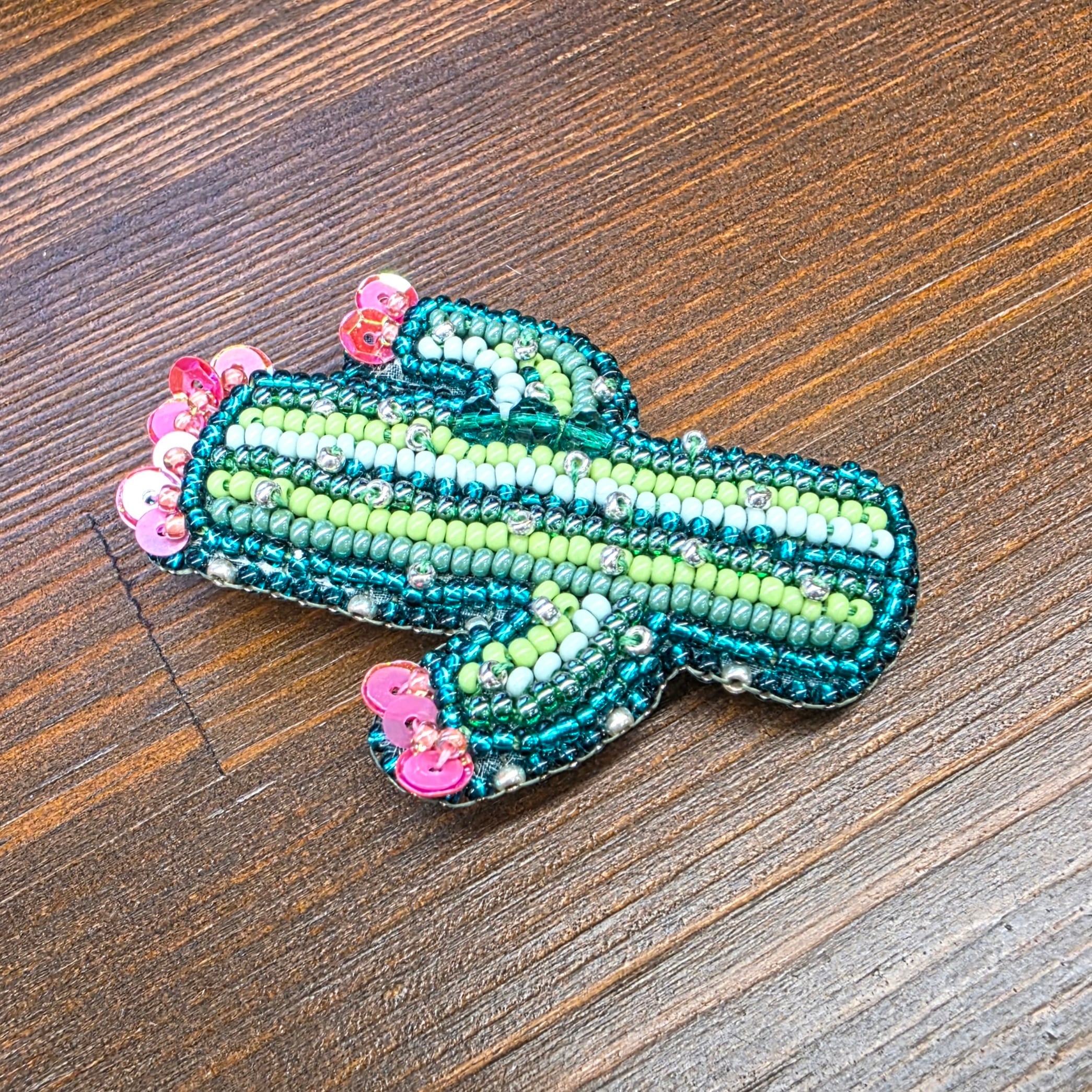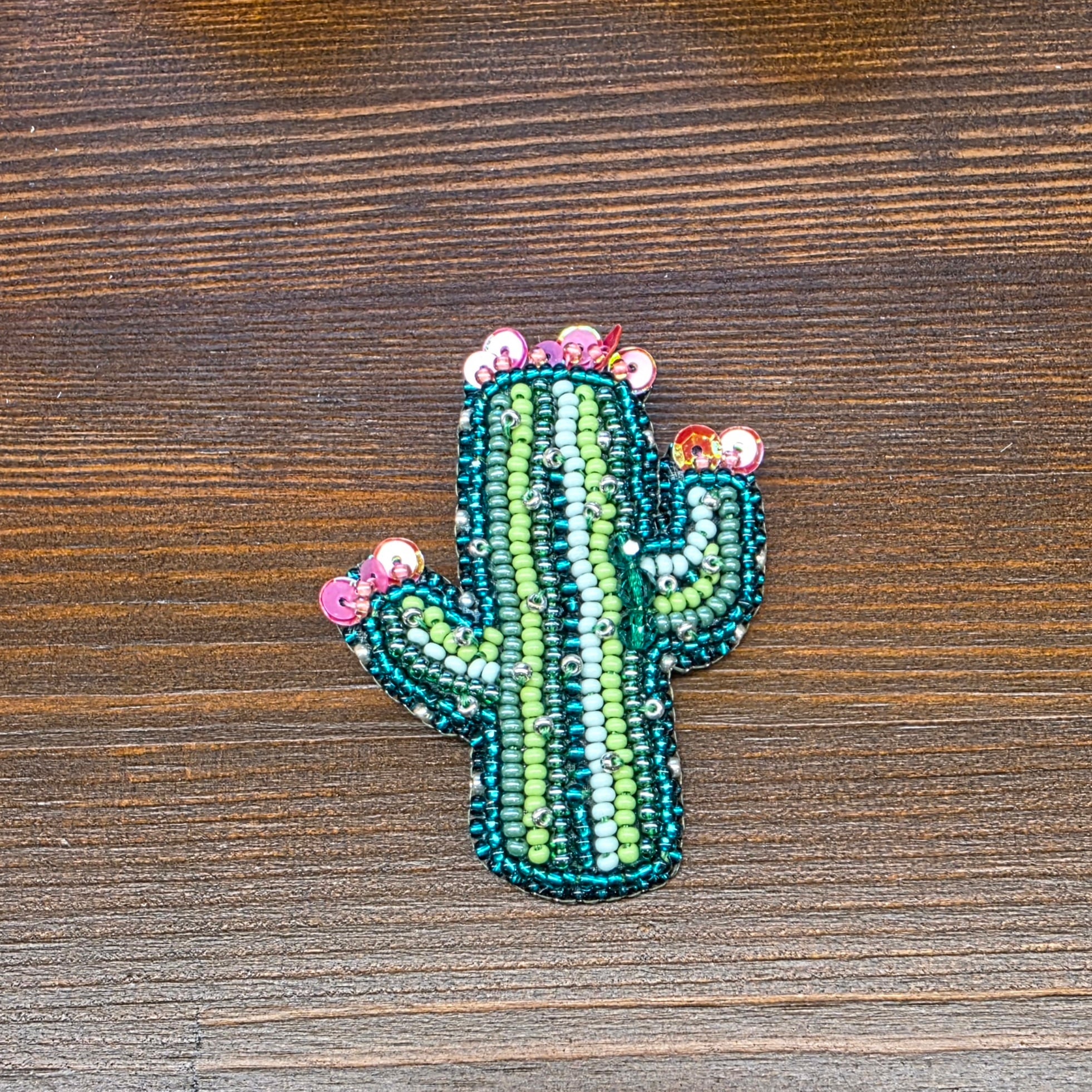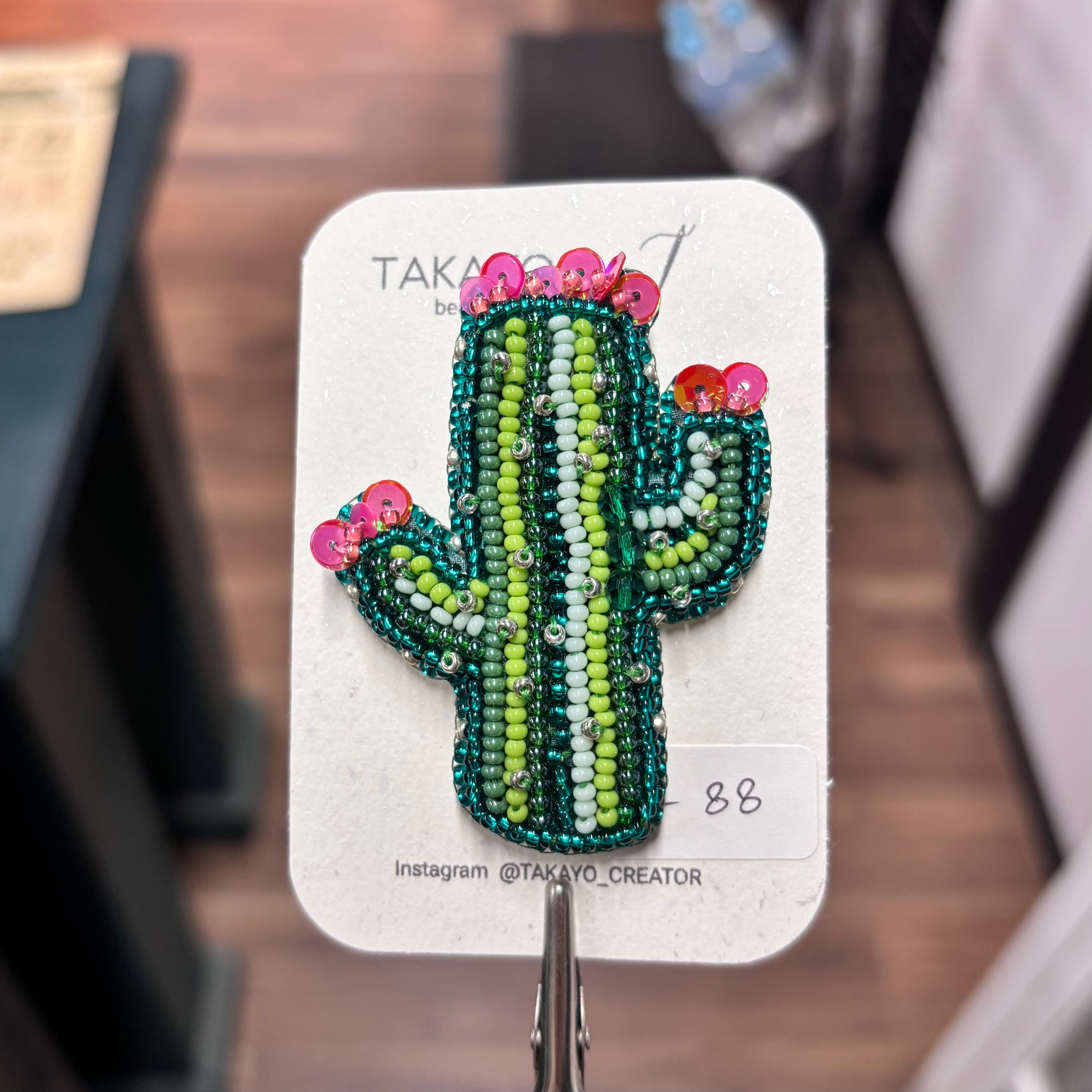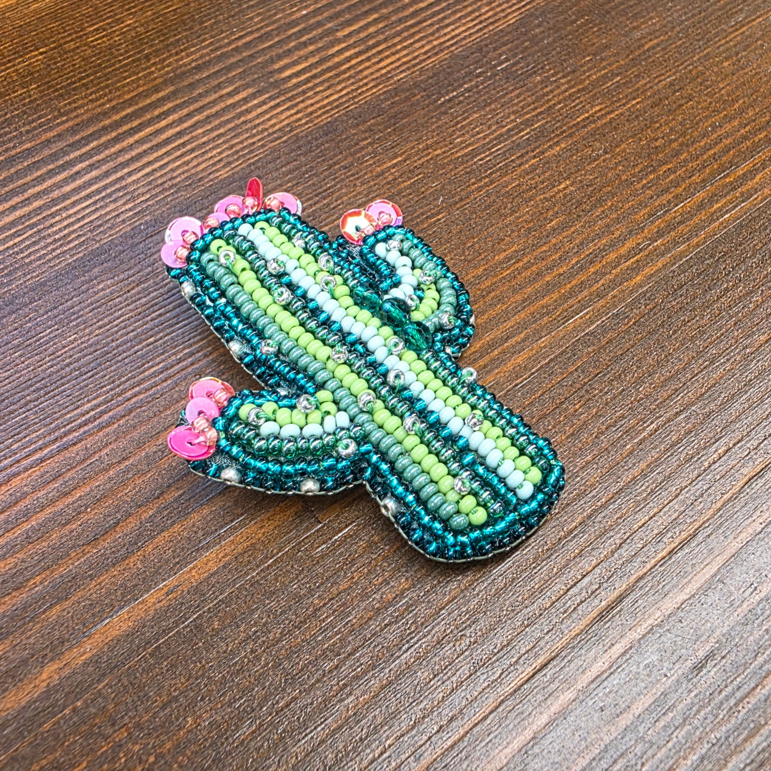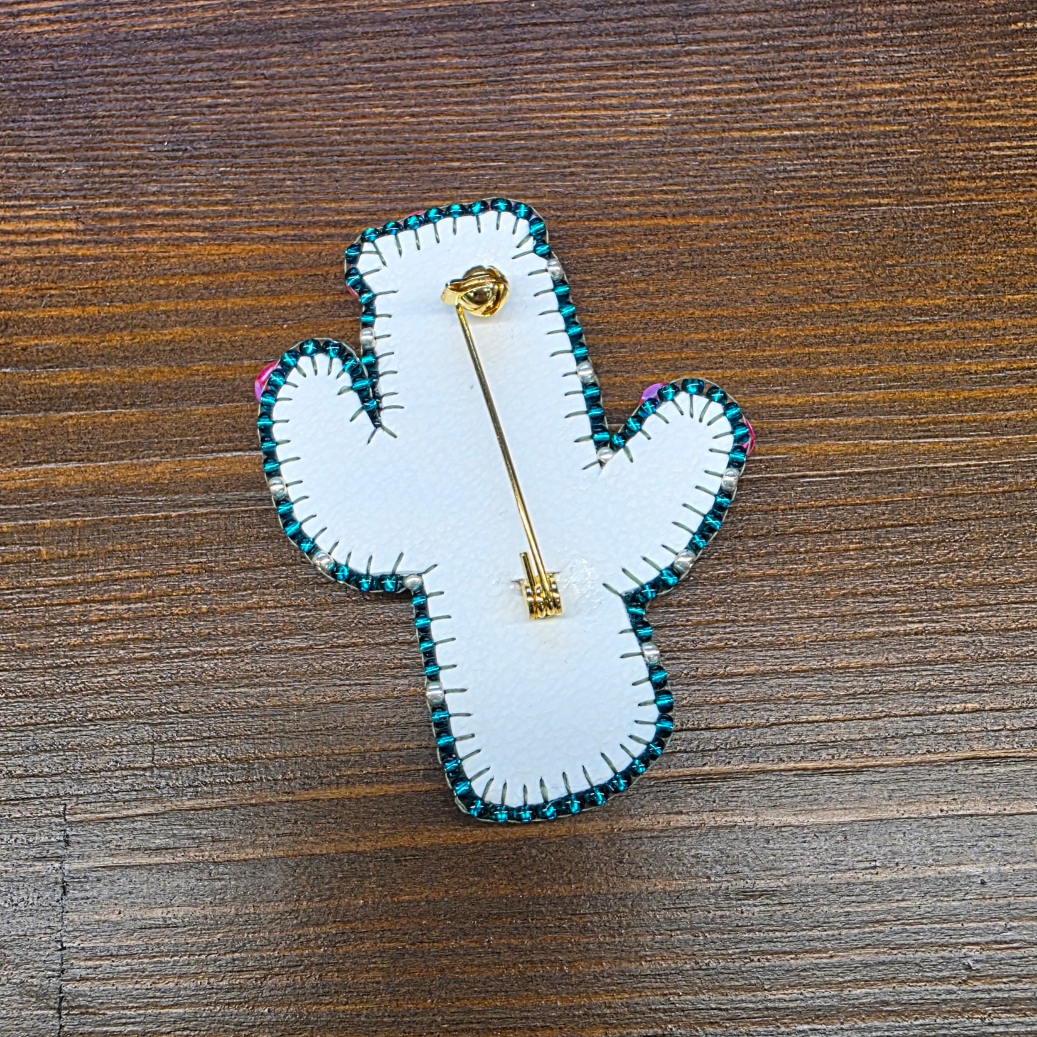形が可愛いサボテンのブローチです。
