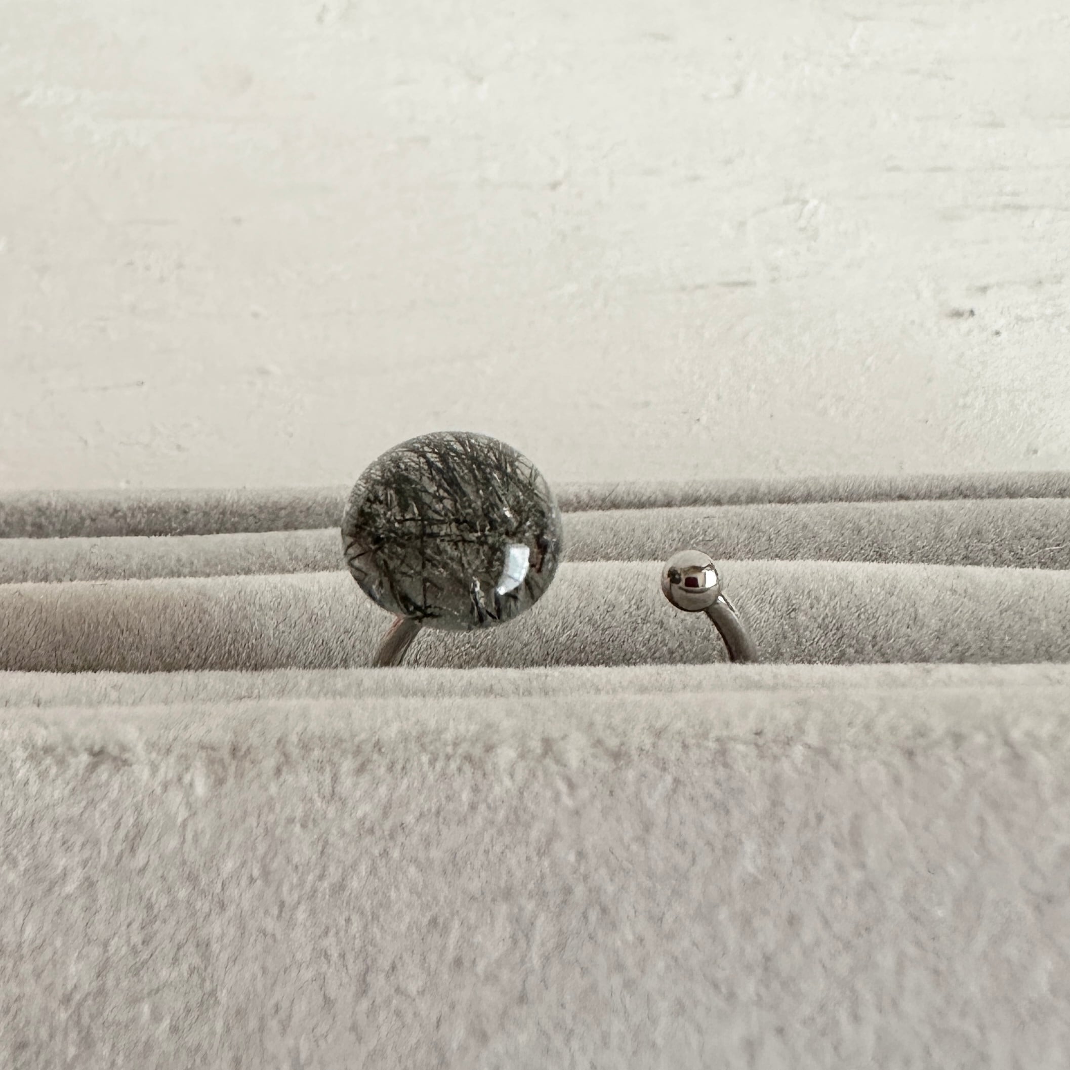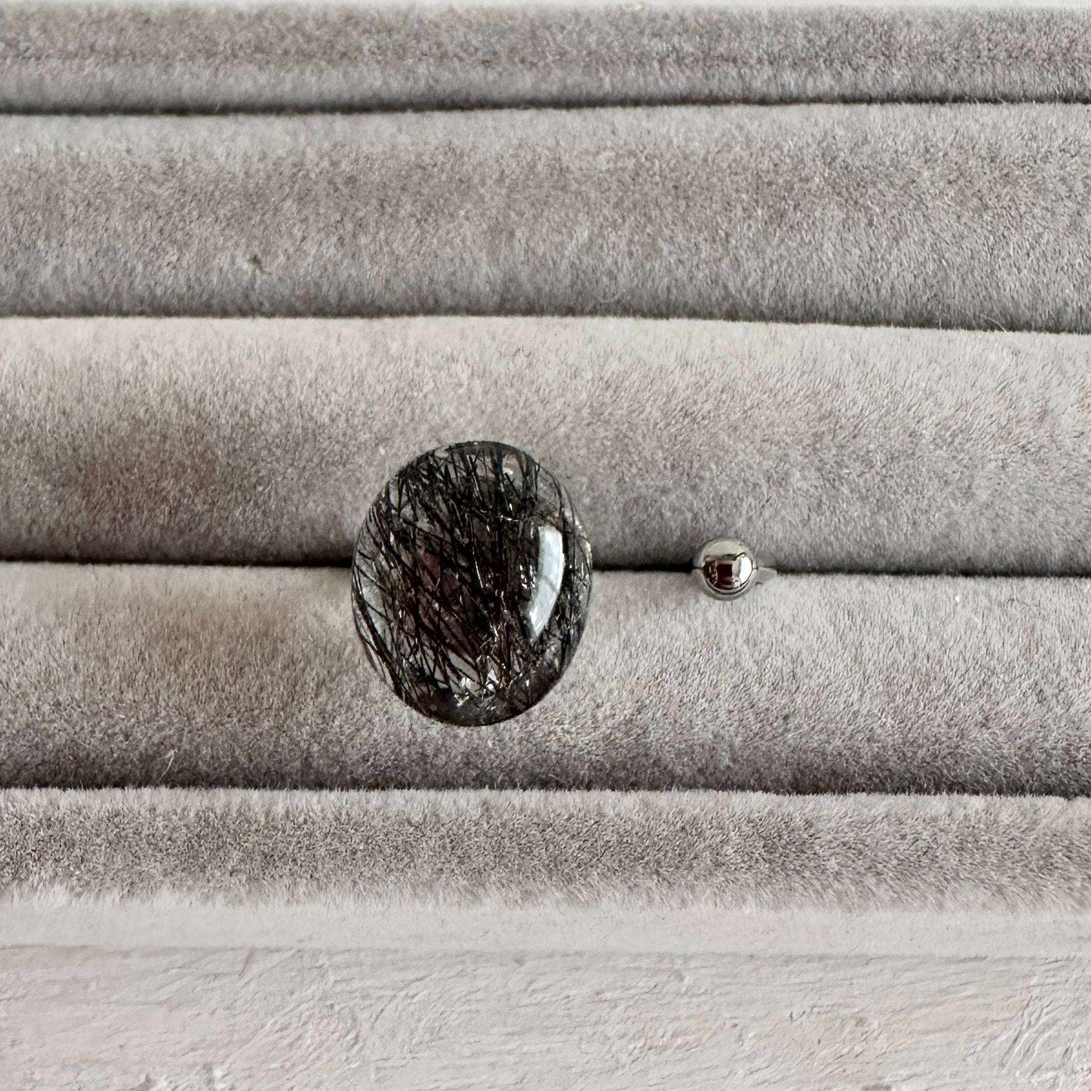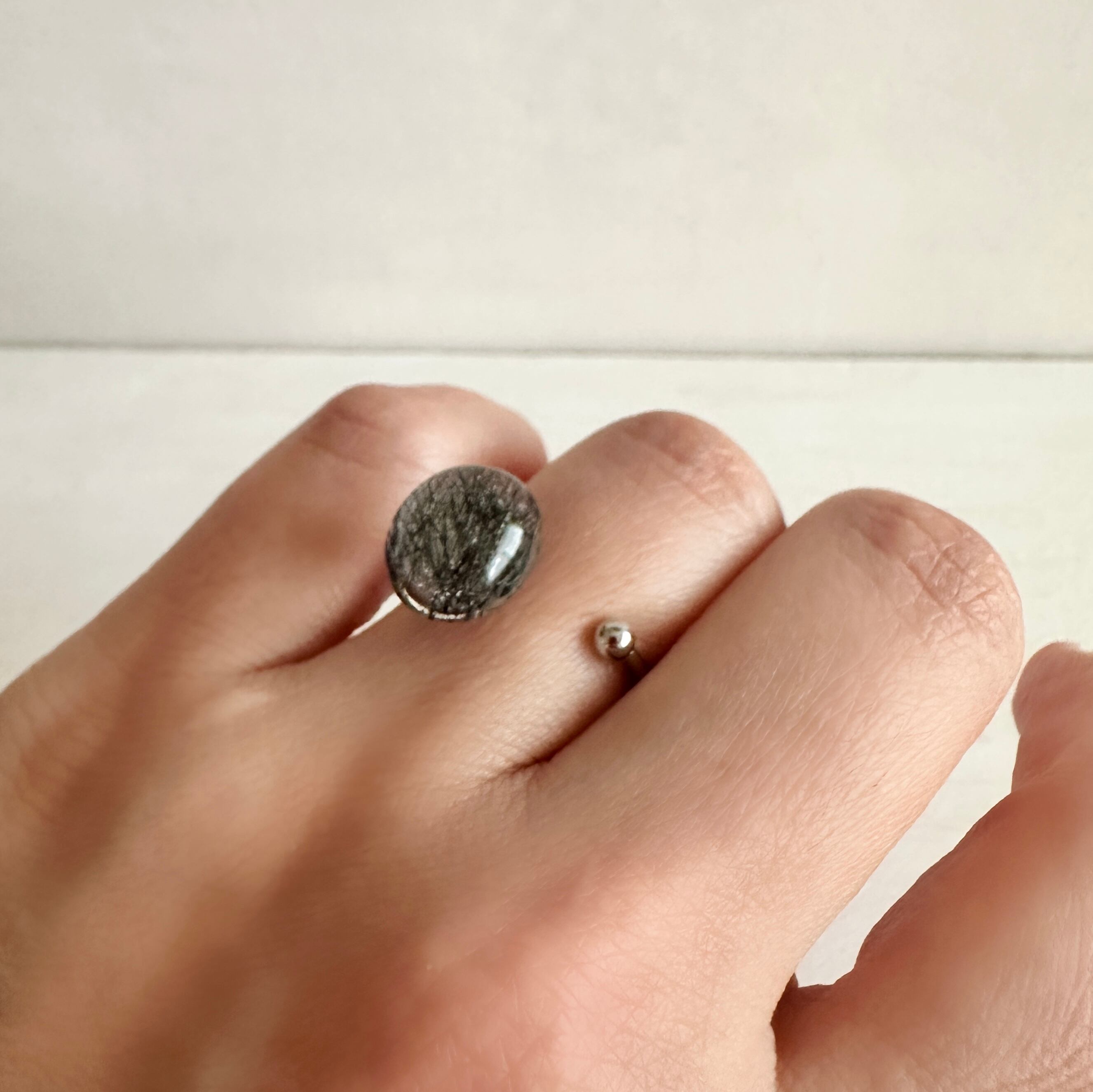 トルマリンクォーツを使用した指輪です。強度を高める為にに樹脂(レジン)でコーティングしています。