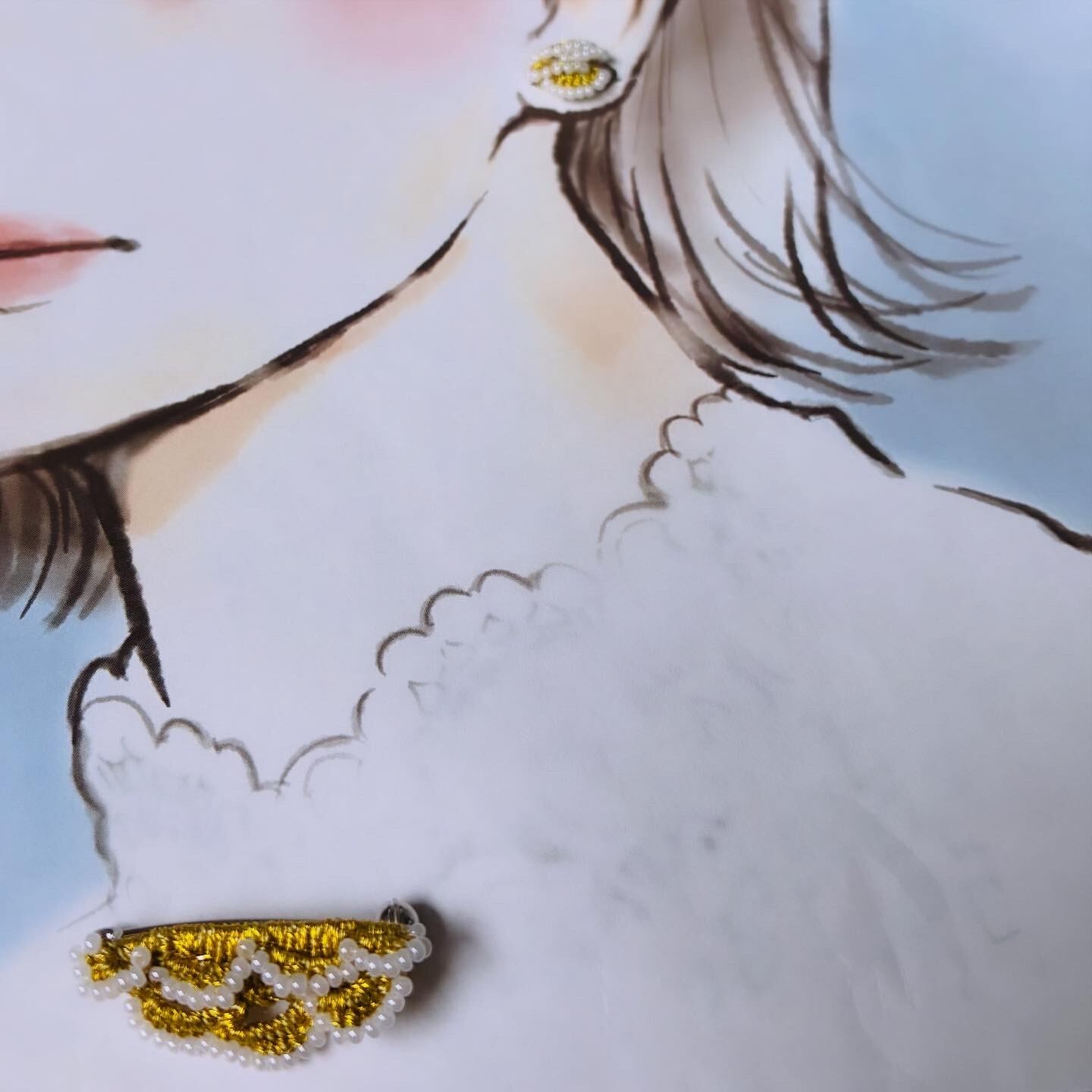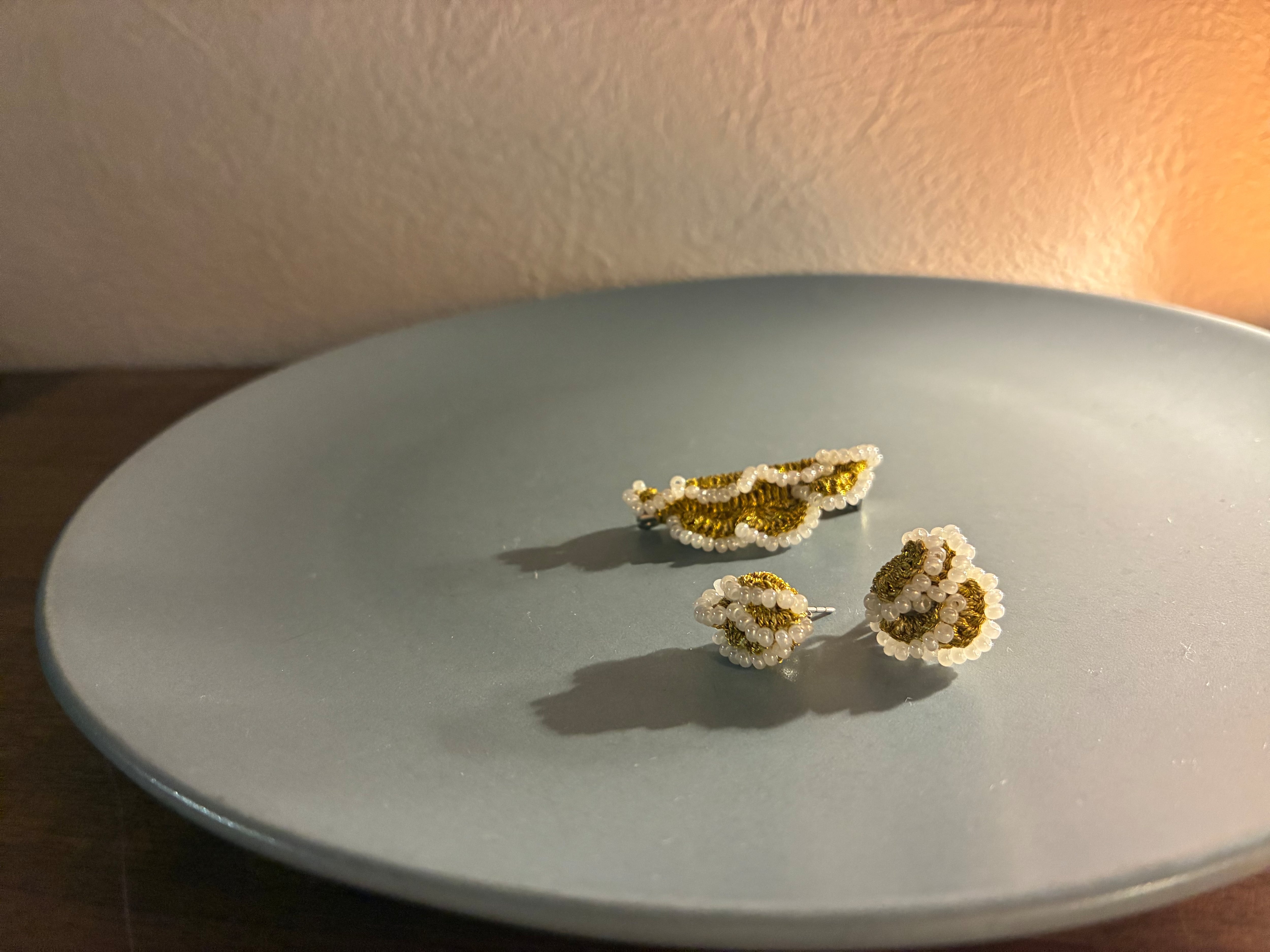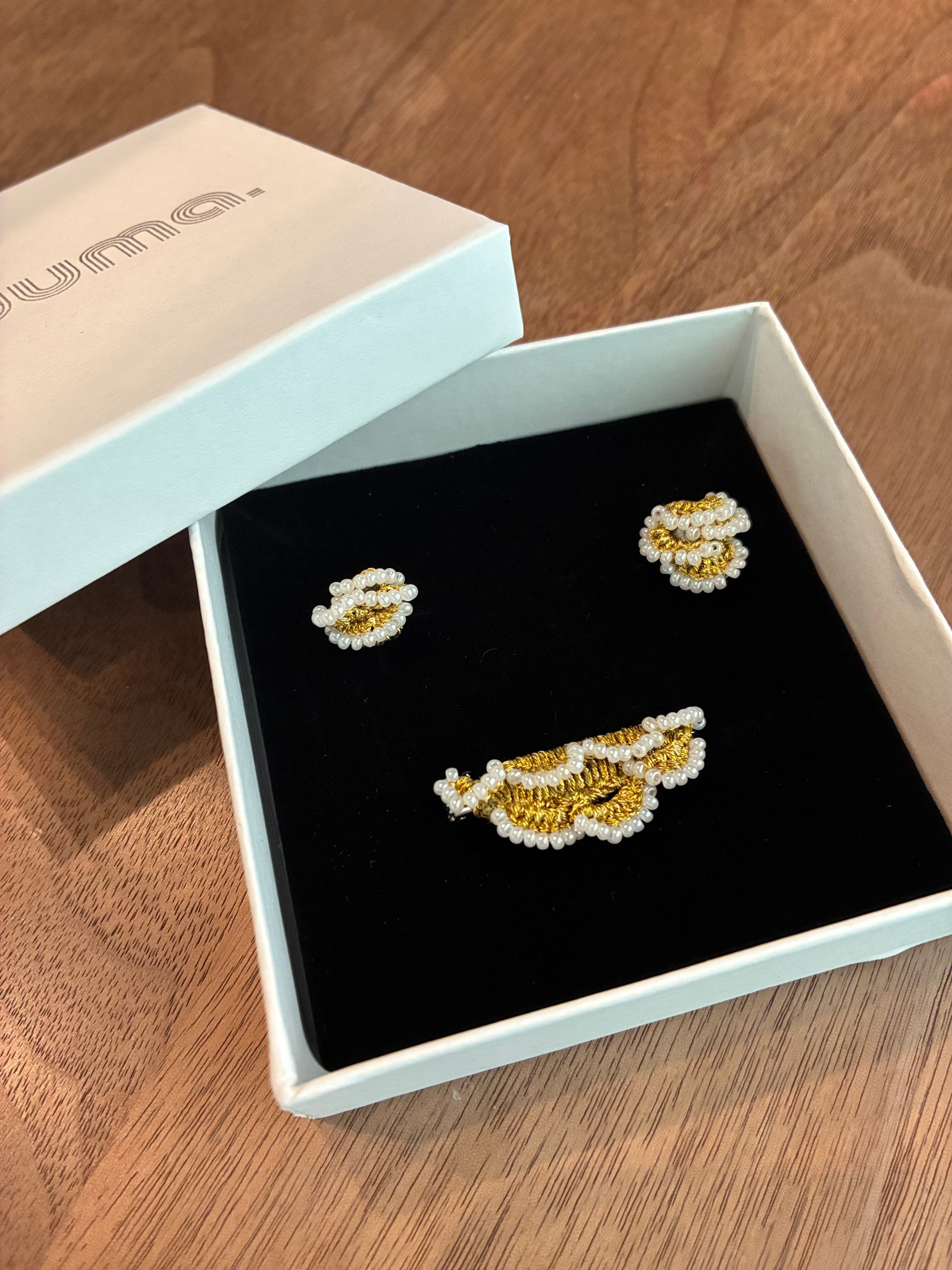 レースのような重なりがかわいいピアスとブローチのセットです✳︎✳︎