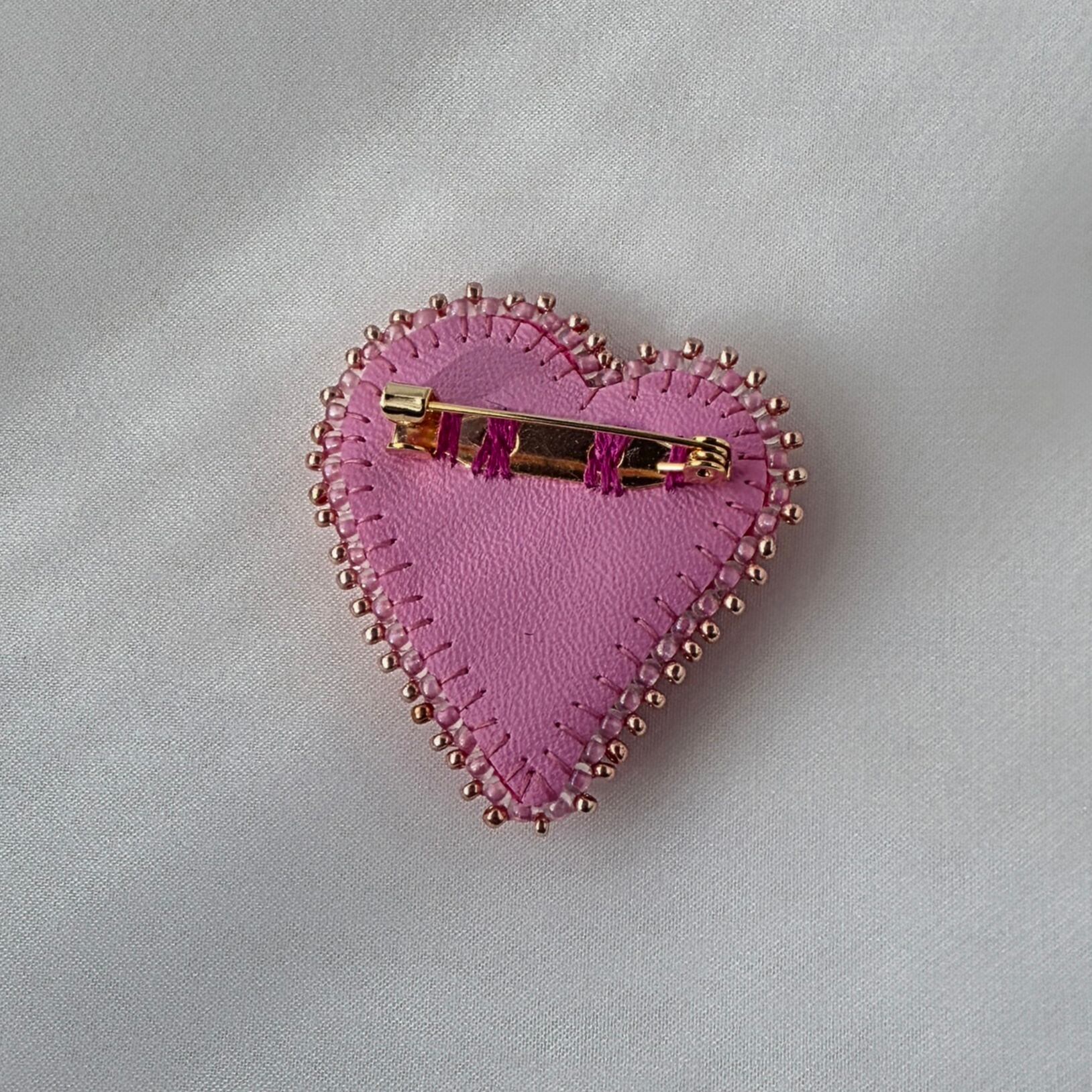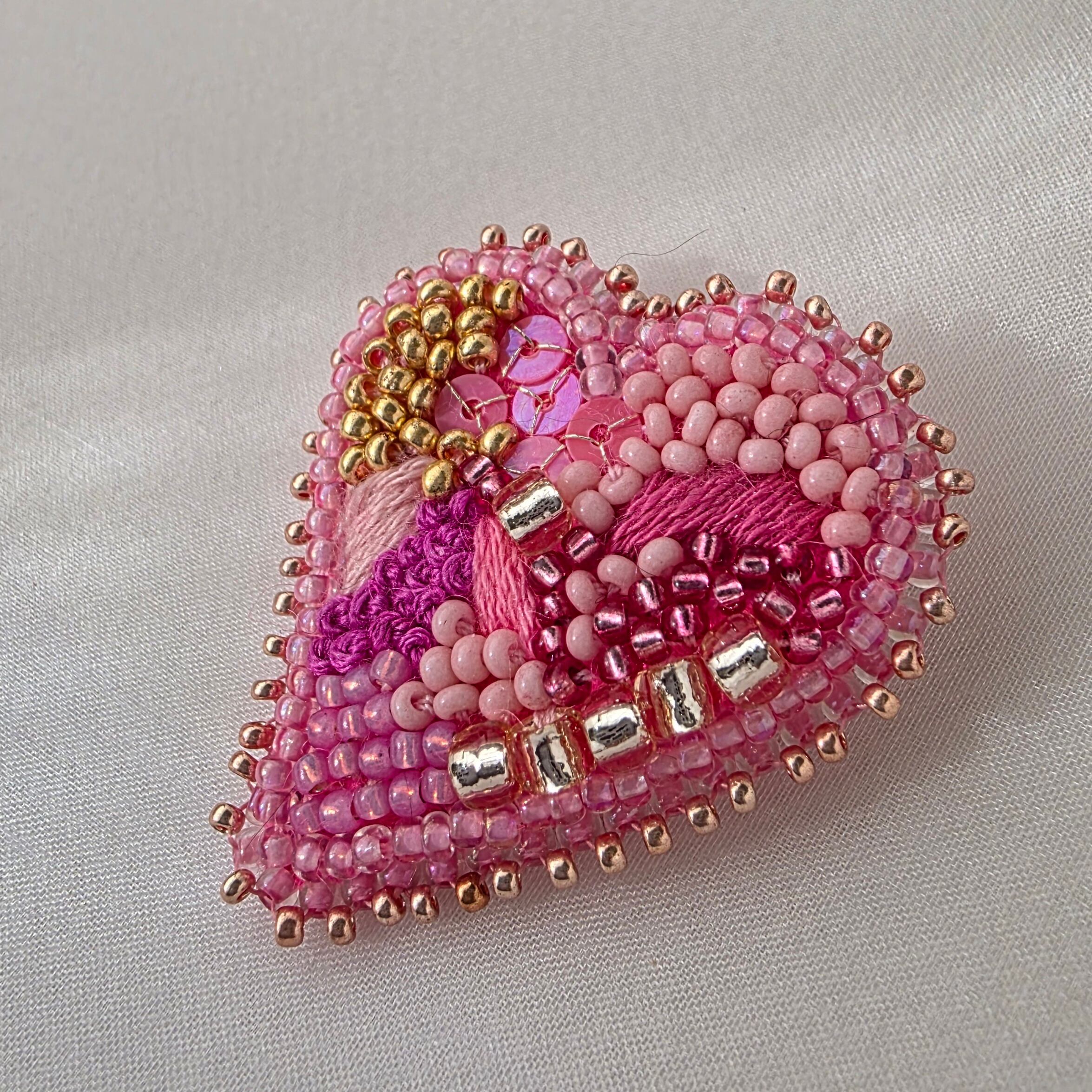 ピンクとポイントに金色を使ったハートのブローチ です。